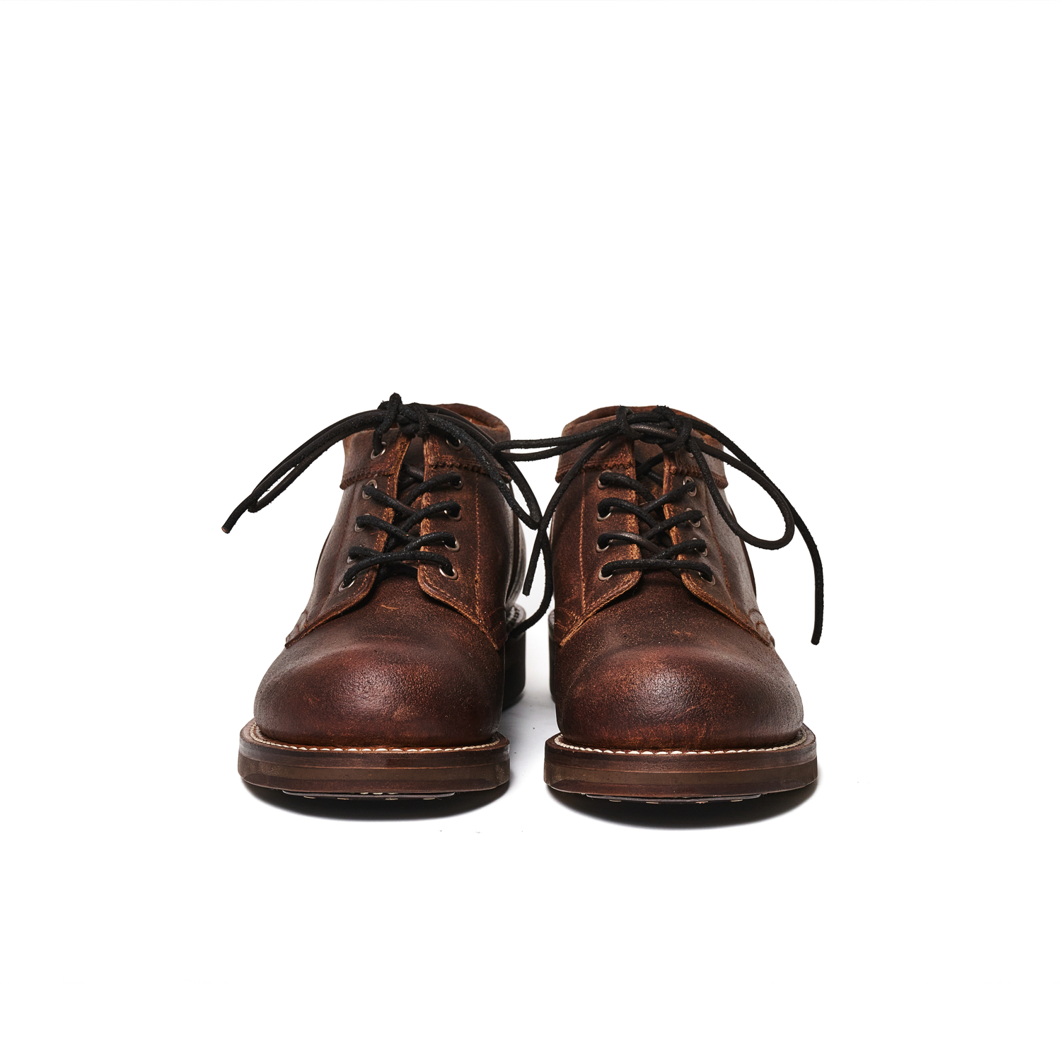 COUPEN is one of our best sellers and an icon of Rolling Dub Trio brand. With its chopped-off height, COUPEN is beloved as versatile leather boot which is not heavy in its image, despite of the heavy-duty construction by Goodyear welting. The low height is fairly handy in our daily life in Japan (as well as in some other Asian countries) as we take our shoes on and off often in a day. This reflects our principle to make our footwear always by considering the user benefits.