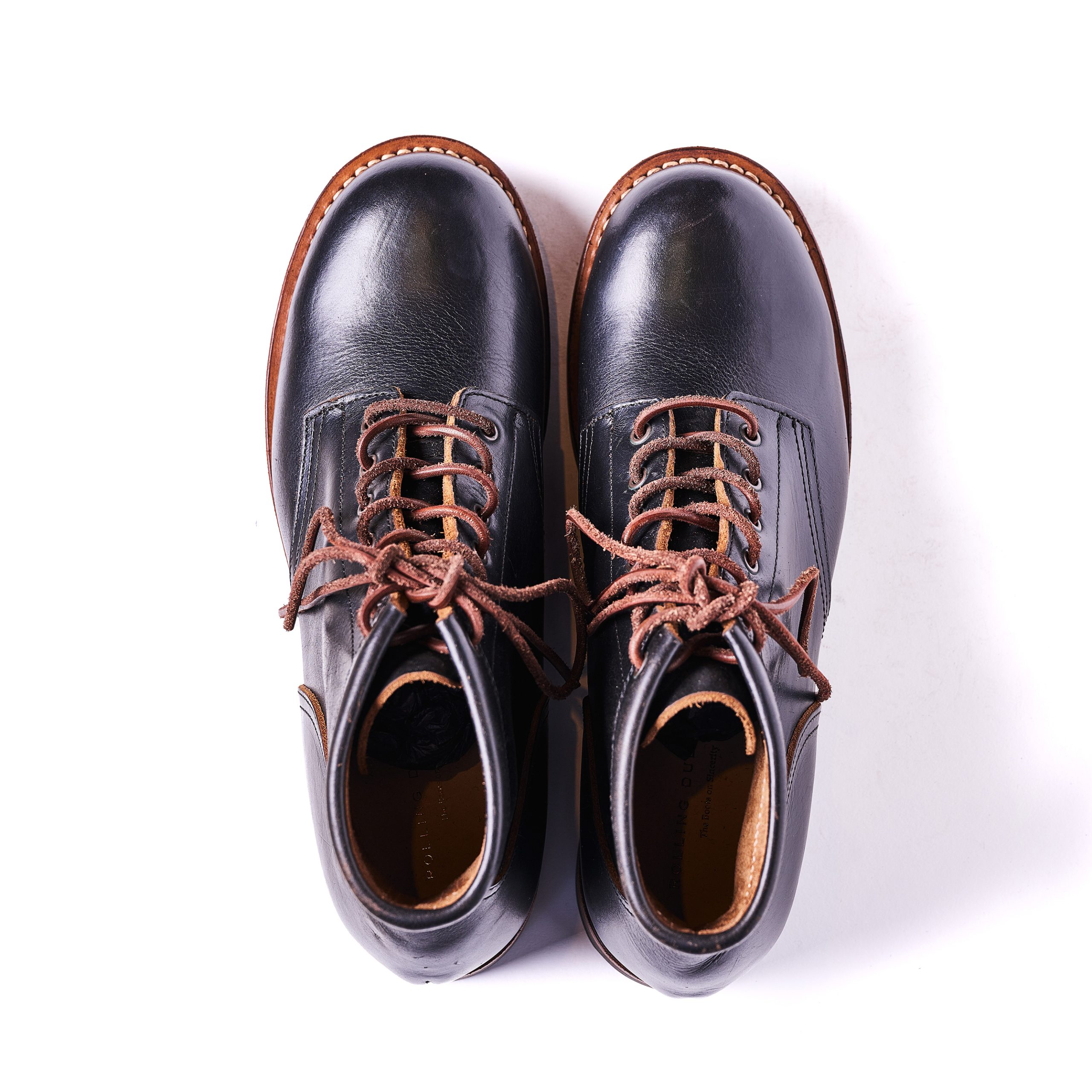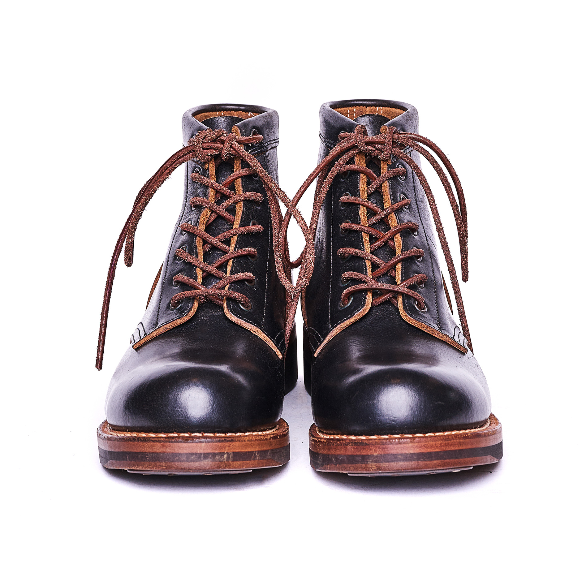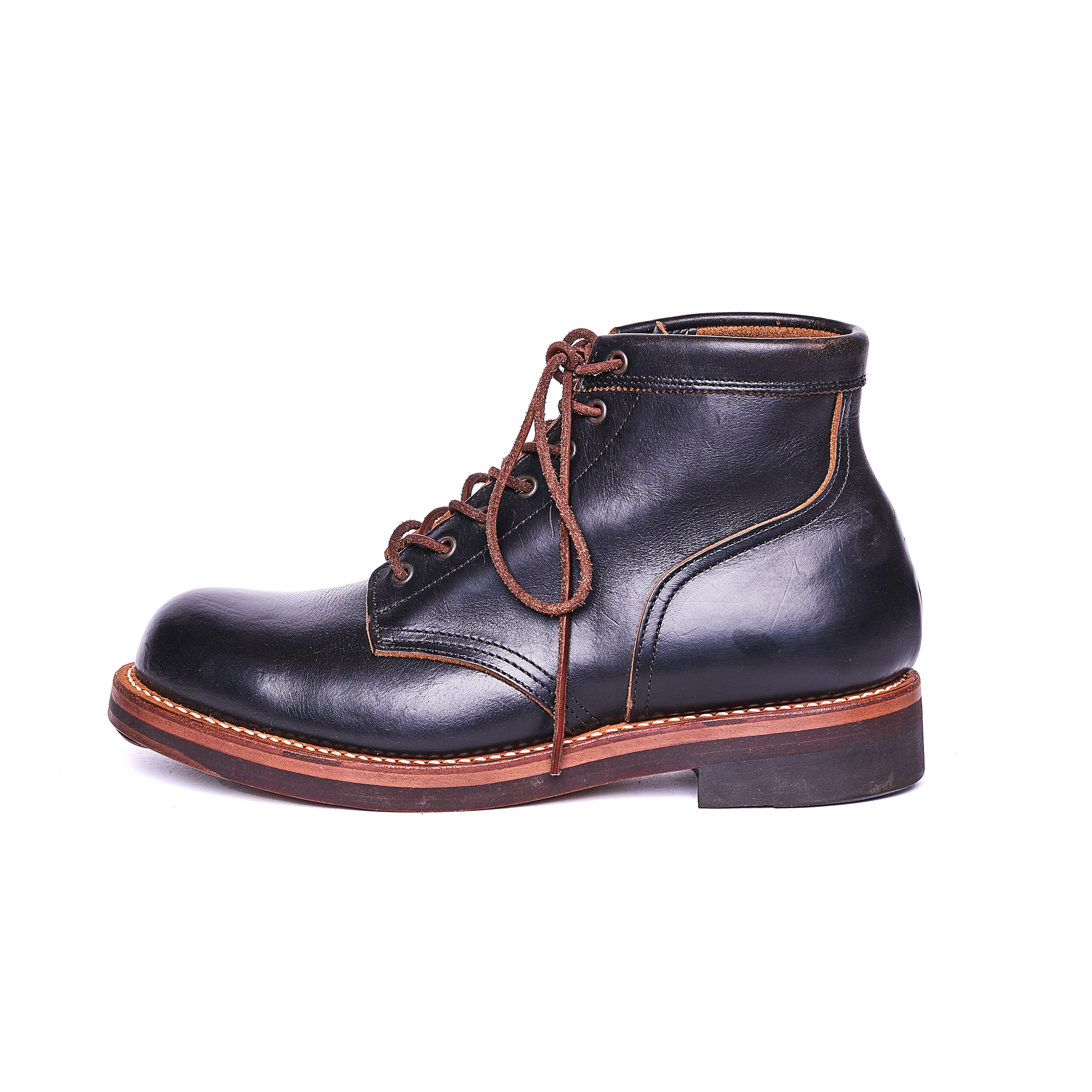 This COUPEN 7, an orthodox style boot is made as a variant of COUPEN. With the height that covers ankles, it has 7 pairs of eyelets that become a part of the name of this style. COUPEN 7 also has some classical details as work/military boot such as the big outpocket heel counter. Being in COUPEN family, COUPEN 7 has distinctive character.
