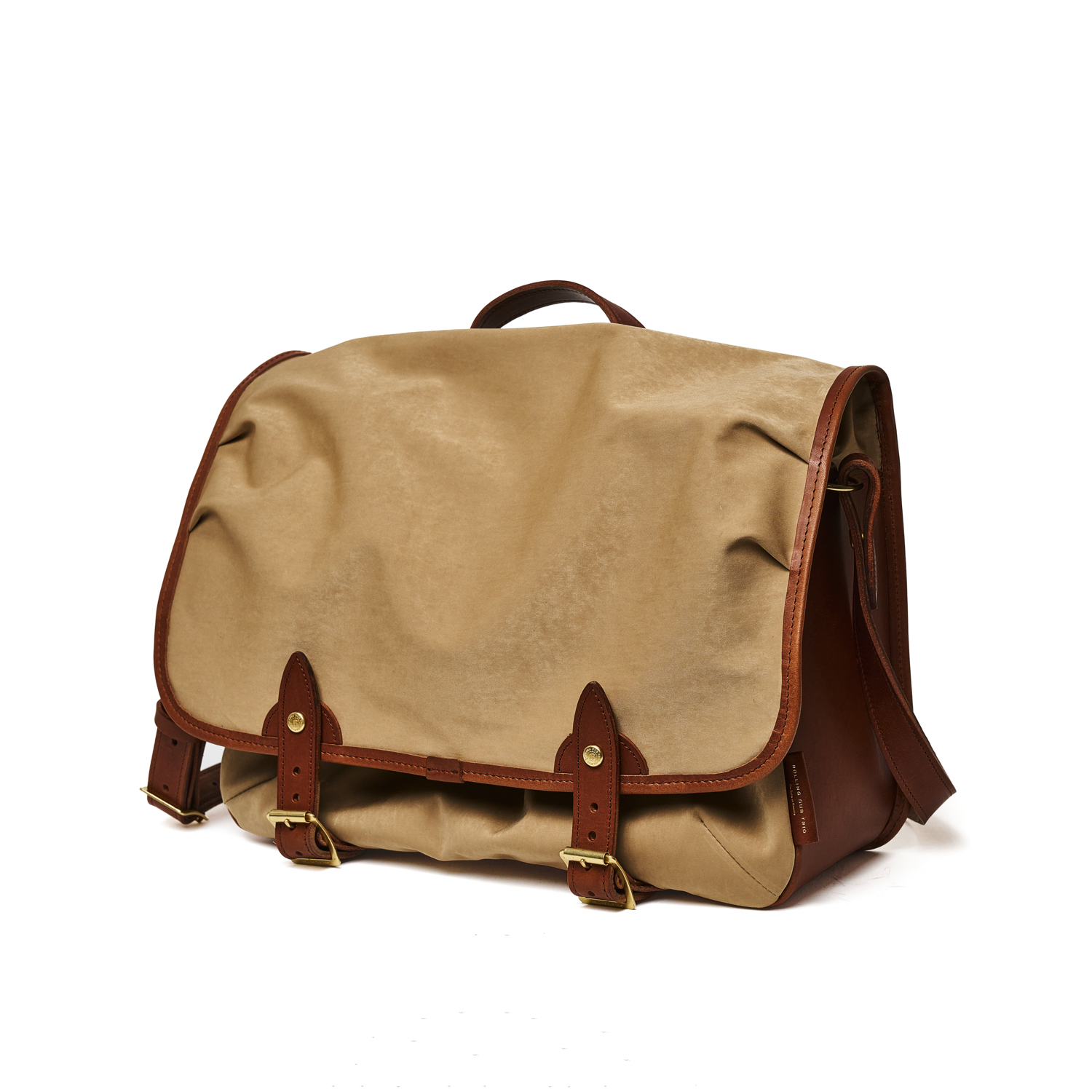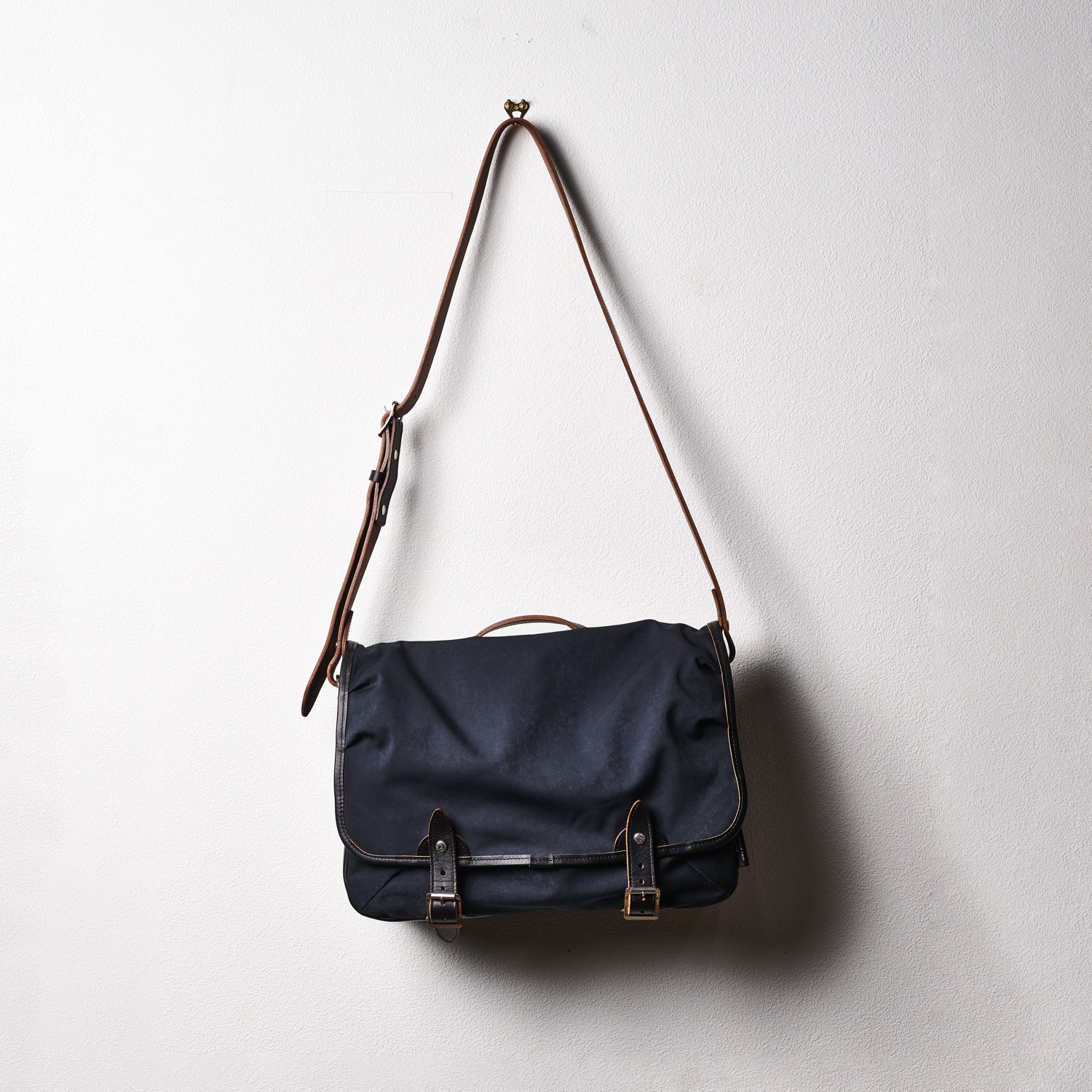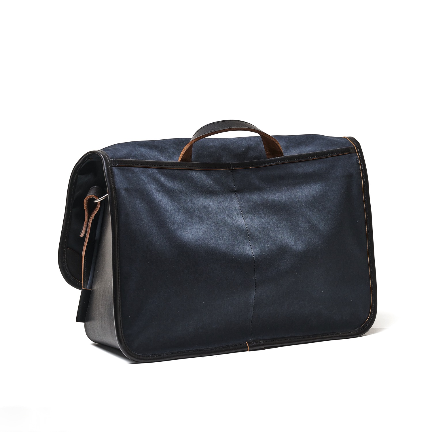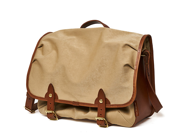 A very handy leather shoulder bag to which A4 size files and documents fit. The right size for business and school use. Materials are Itaalian Vachetta leather and super high density Mili-cloth. These materials go well together and make the bag look sophhisticated while having high level of durability. They both look better when used and worn, making the bag developing the nice patina as it is used.