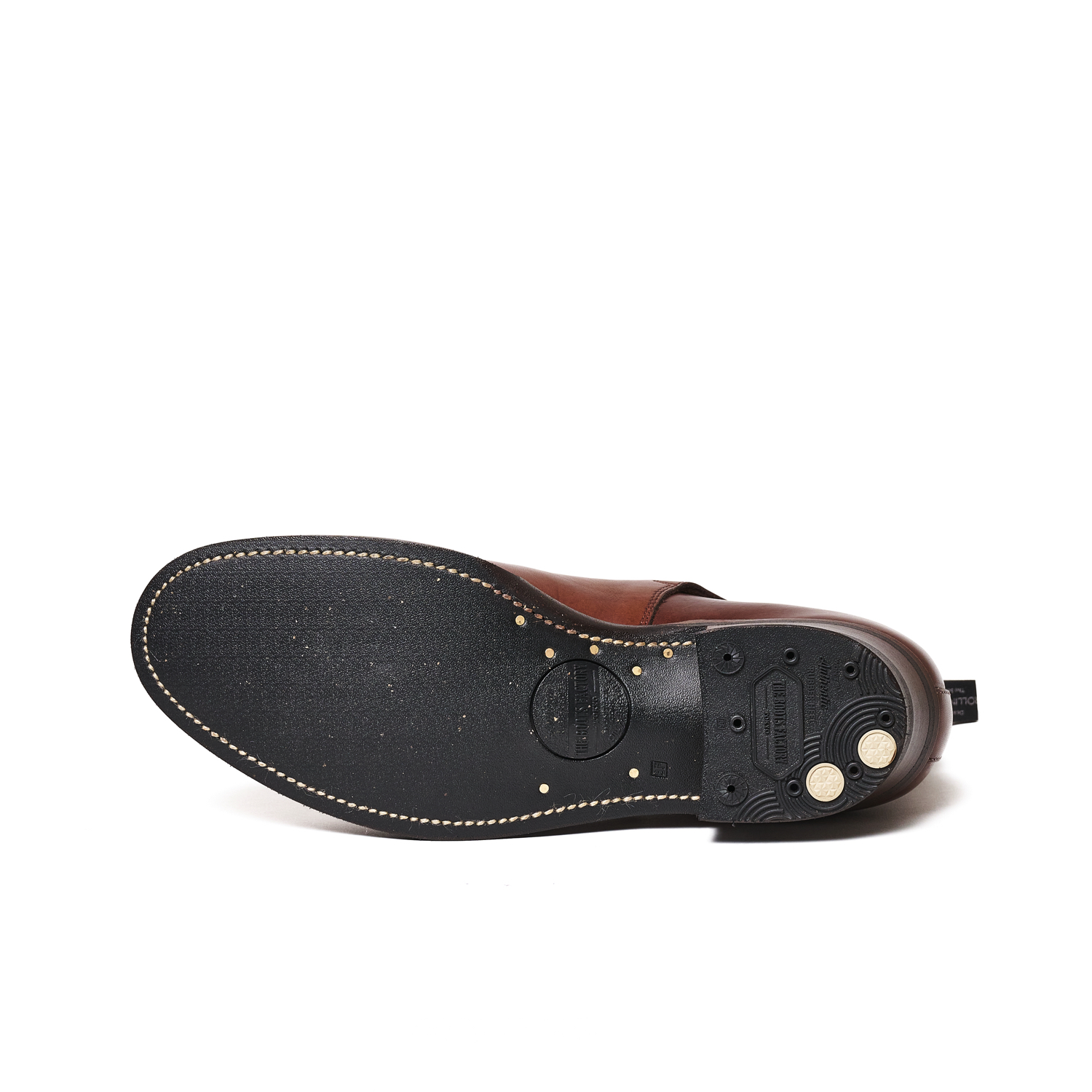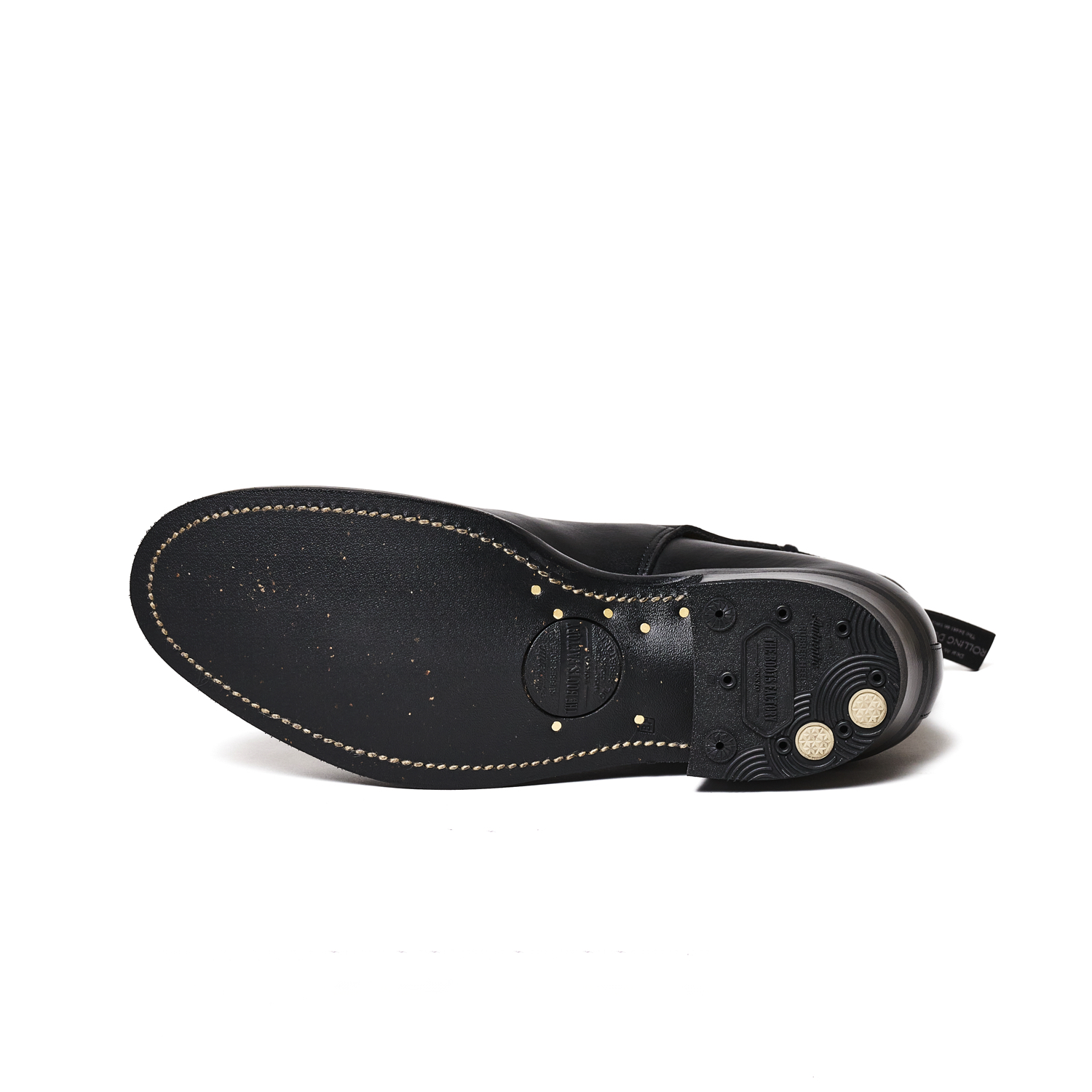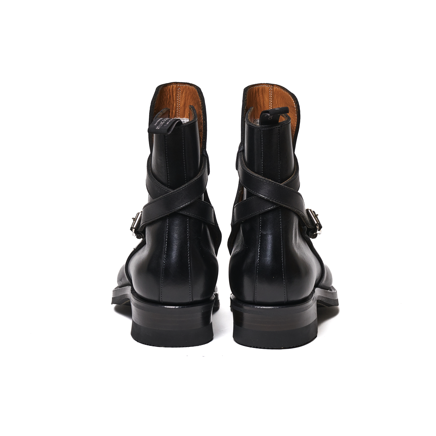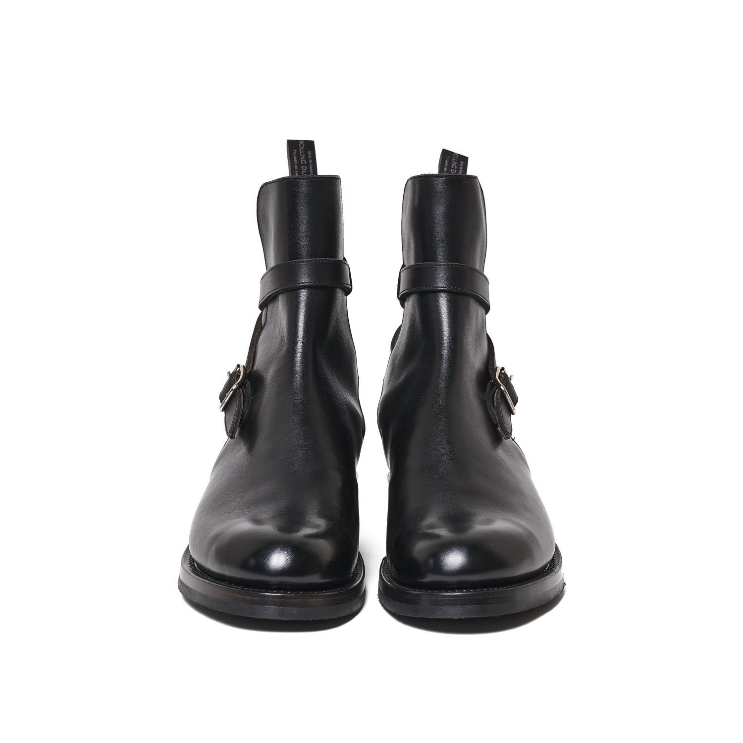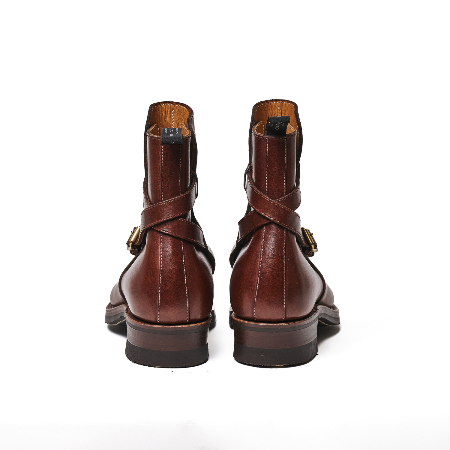 Design --- Jodhpur Boot, which was originally designed for horse back riding in the end of 19th century in England, is a boot filled with functional beauty and class. We make this boot with our original last which was modelled after US Navy last and with Direct Welt construction (stitching upper and welt from thorough the channel on the bottom of insole, and then stitching sole and welt) that enables the boot to have sharp looking. The strap system is also original. The long rectangle buckle is held by short stay on the side that makes putting on and off easy and smooth.