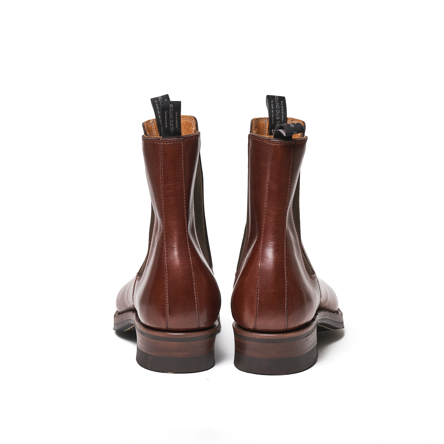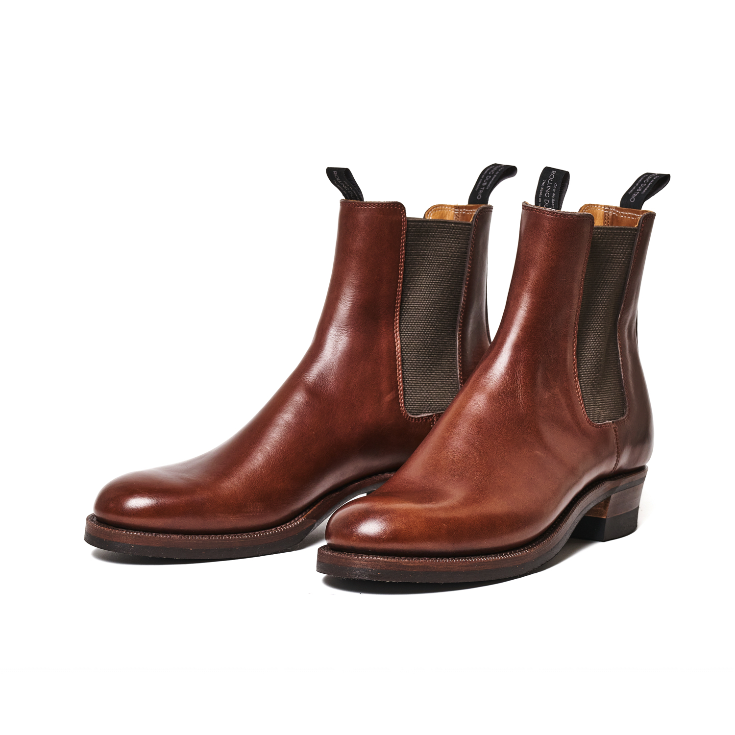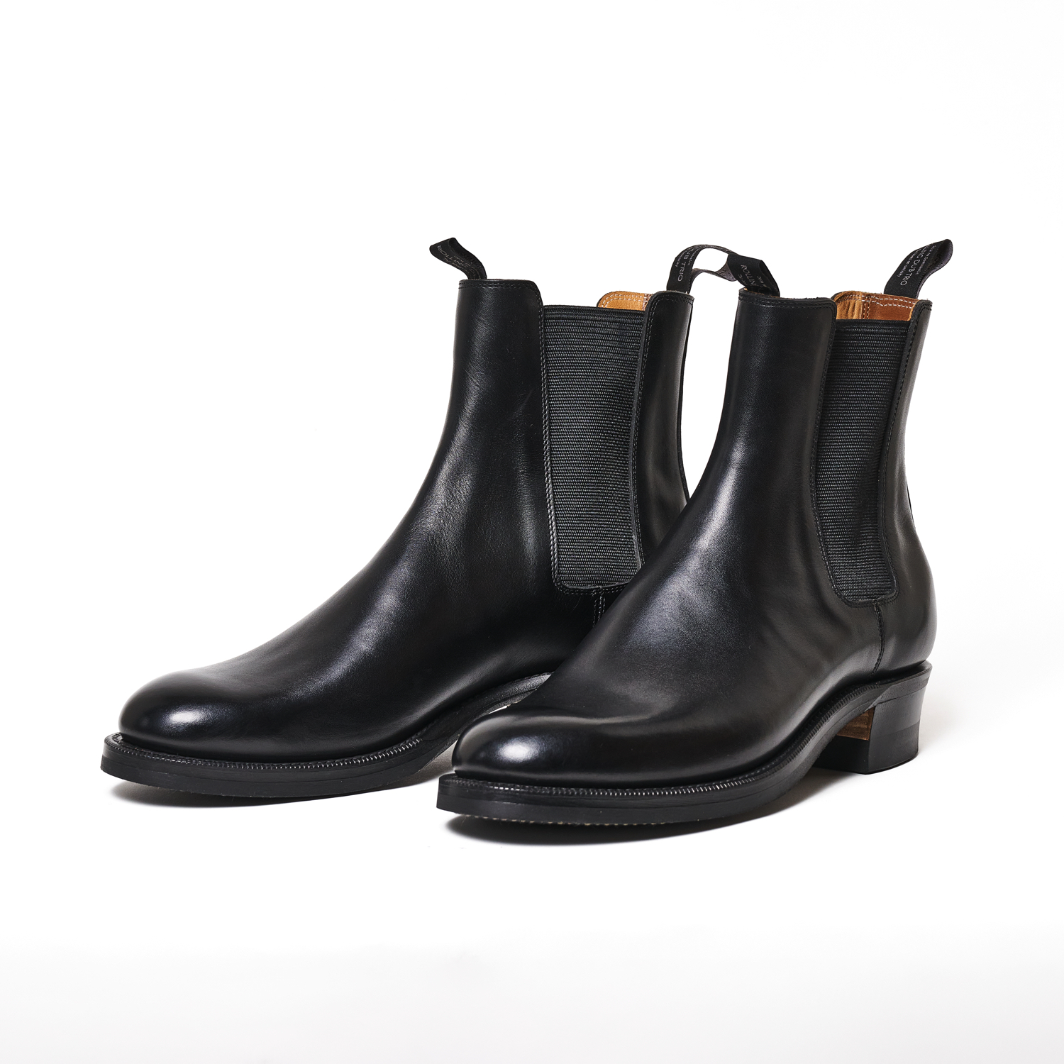 A new side-gore boot from GRIFFIN line. A little higher quarter (6.5 inches), comparing to other side-gore boots, enhances the beautiful carvatures that the boot has. For the gore (elastic cloths), we selected the most durable material existing in the market (made in Japan) that guarantees the long years of wearing. This streamline boot is built by well experienced craftsman of THE BOOTS FACTORY. Gracefully sophisticated boot.