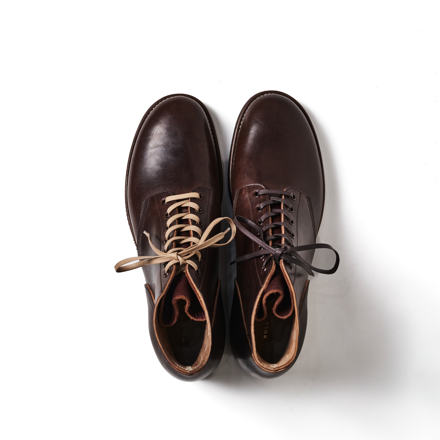 数多くのブランドがそのレプリカを手がけるミリタリーシューズの名作 M-42 ブーツと M-43 サービスシューズ。本作は、その2足の「良いとこ取り」を目指してデザインされた、挑戦的な一足です。