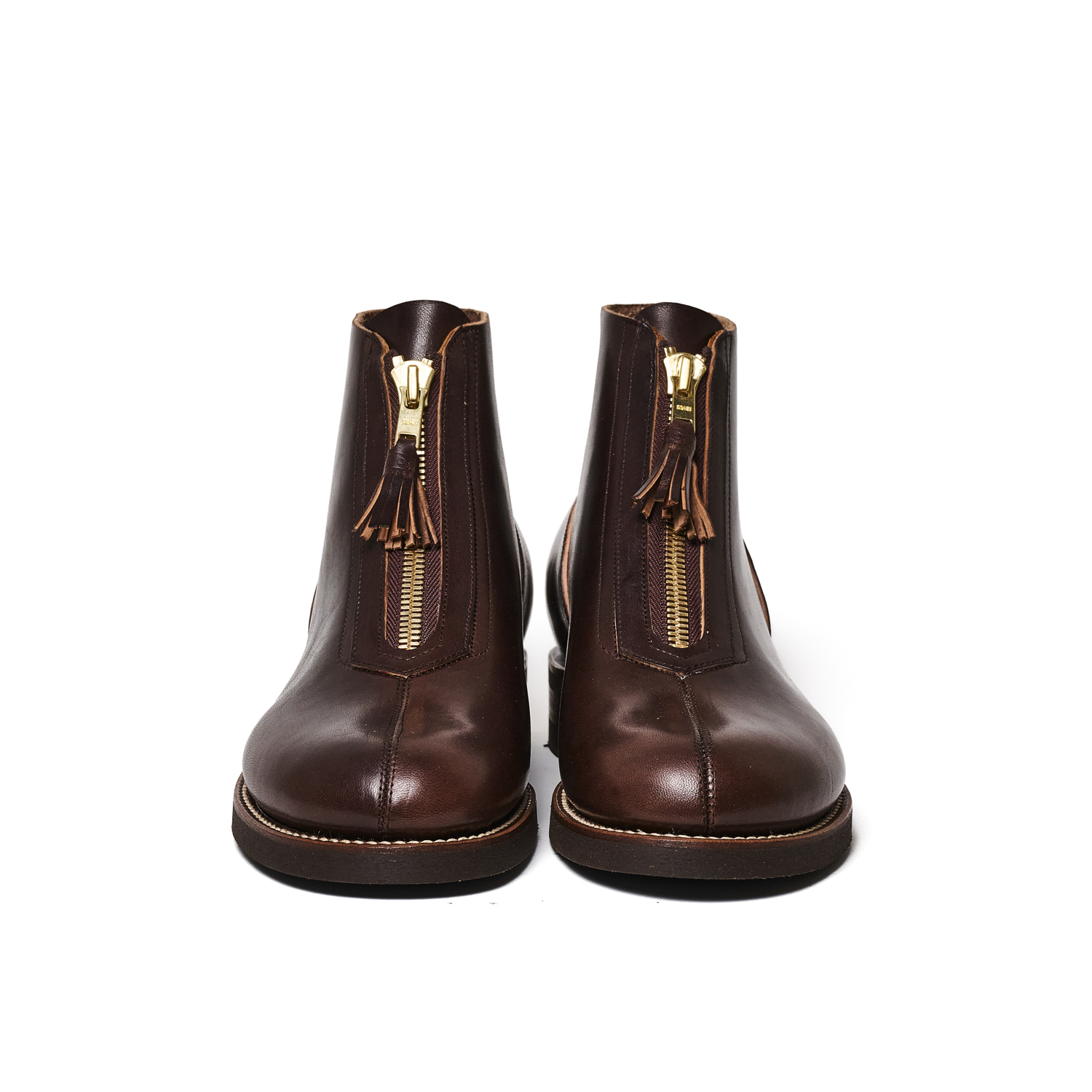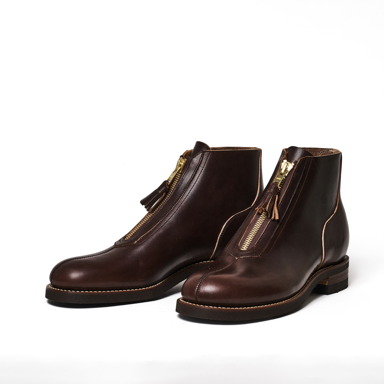 This "M-42.5" Service Boots is created by blending the 2 historical American military boots, M-42 and M43. We tried to mix the best of these 2, shape of Munson last and rather high heel of M-42 and unlined upper and beautiful stitching work from M-43. Picking the best elements of these boots, "M-42.5" comes to have new, original silhouette. We also put the stamp that makes us think if THE BOOTS FACTORY was a contractor of US military. Making a replica of what has never existed, is a paradoxical approach that we take to make this unique boot.
